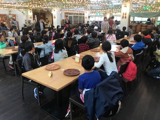 もくもくファームでの活動を終えて、昼食です。もくもくファーム内で生産されている新鮮な野菜等を使った料理がとても美味しいと評判です。6年生もしっかりと食べたようです。