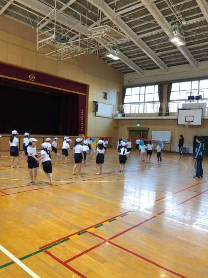 ドッヂボールをして楽しみました。年長児に優しく接する姿から、1年間の成長が感じられました。