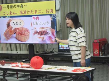 地図で、中国と日本の位置関係を確かめ、歴史的なつながりについても教えてくださいました。「食」についてでは、餃子は皮から作ることや、水餃子にして食べることを教わりました。