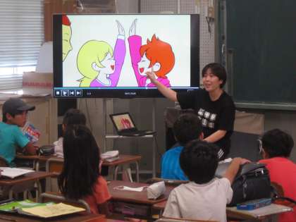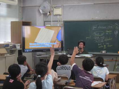 4年生では、物語を見ていました。場面に出てくる単語を見つけたり、会話の内容を考えたりしながら読み進めていました。