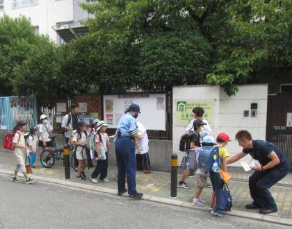 交差点や子どもが横断する道で、地域の方々が見守りをしてくださっています。