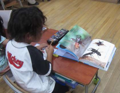 動物や昆虫の本を読んでいる子がたくさんいるなぁ…と思っていると、廊下に特設コーナーが設けられていました。1年の先生に聞いてみると、総合的読解力の育成に向けた学習で「いきものとなかよし」という学習をするので、その事前学習として、図書館司書の先生が集めてくださった本なんだそうです。