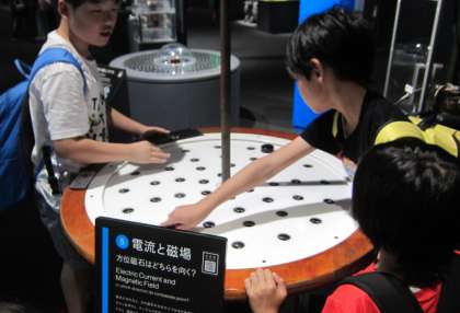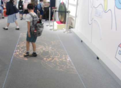 展示コーナーでは、歩くと水面のような波紋が映る床や、電磁石の磁場を方位磁針で見ることができたり、水力発電の仕組みを使い発電したりと、たくさんの実験や体験をして楽しみました。