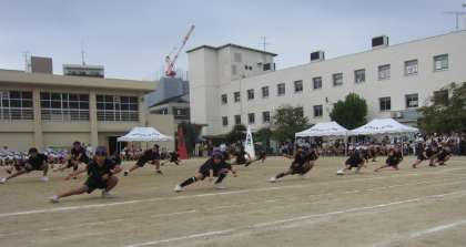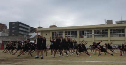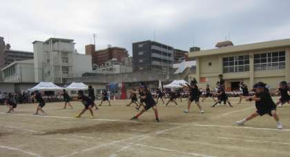 5年生は、黒いTシャツを身にまとい、「南中ソーラン」を踊りました。腰をしっかり落とし、低い姿勢からの「どっこいっしょ! どっこいしょっ!!」は、掛け声もしっかり出ていて、迫力満点でした。
