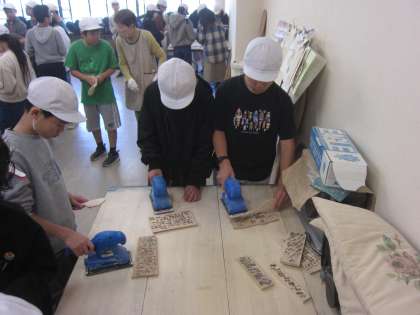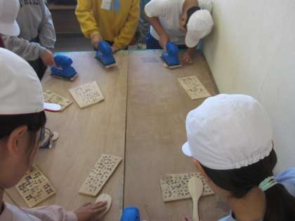 杓子作り体験(機械を使って磨く)