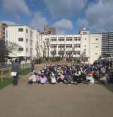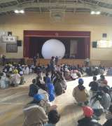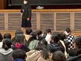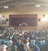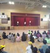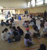 朝の時間に、1〜5年生が講堂に集まり、3月3日(金)の卒業を祝う会に向けた準備...