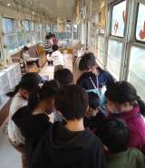 2時間目終わりの休み時間です。たくさんの子たちが電車図書館に来ていました。外が...