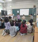 朝の時間に、読み聞かせボランティアの方たちが本の読み聞かせに来てくれました。い...
