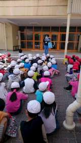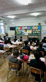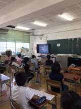 朝のフォニックス(英語音声指導)の様子です。 左から、4年生、5年生、6年生...