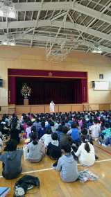 朝の児童集会で、前期代表委員が1年間の目標を 発表しました。 一人ひとりが、画...