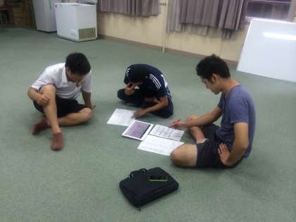 放課後先生たちが、集まって組体操の練習に向けて、競技、準備をしていました。