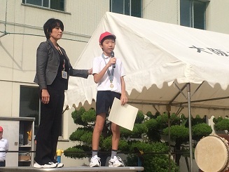 教育実習生の二人の先生の紹介と、俳句コンクールに応募した6年生のH君の表彰を行いました。H君の俳句は、親子の絆を詠んでいて優秀賞を受賞しました。