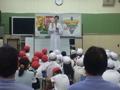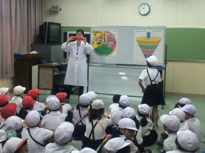 今日は、スーパーライフに社会見学です。その前にライフの専属管理栄養士さんから赤・黄・緑の食品群など食育の話をしていただきました。