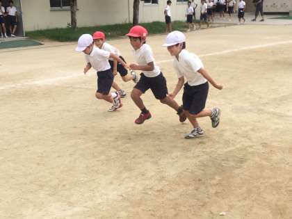 運動会の練習 2年かけっこ、大玉運び