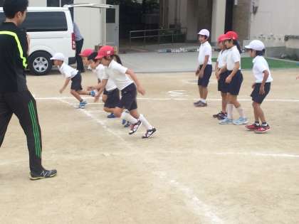 一人一人名前を呼ばれて、大きな声で返事をしてからスタートラインに並びます。応援にも熱が入ります!