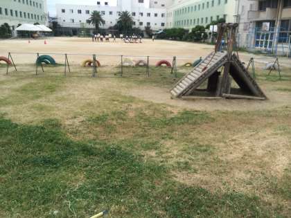 運動会の観覧席の整備をしています。除草をしてきれいになりました!