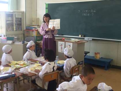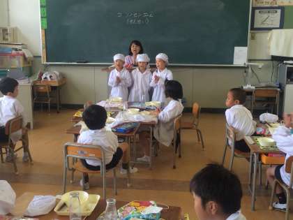 民族クラブ担当のコ ソンセンニンが、1年1組の教室で一緒に給食を。あいさつの仕方などを教えてくださいました。Aくんが、「英語の『ファイト』を韓国語では、なんて言いますか?」と質問していました。運動会のダンス曲は、「ファイト!!!」です。励ましの言葉を知りたかったんですね。さすが!