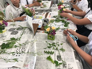 6月20日 地域の方々のご協力のもと、6年生は生け花体験をしました。