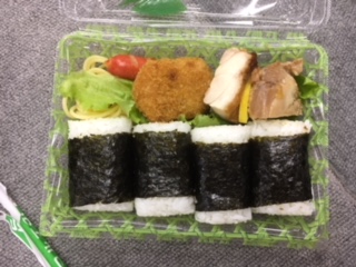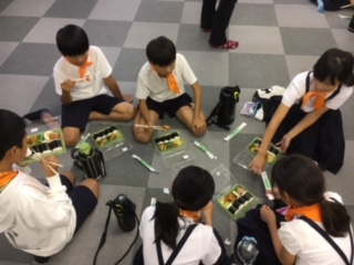 昼ごはんはお弁当です。お天気が心配なため、室内で食事をしました。