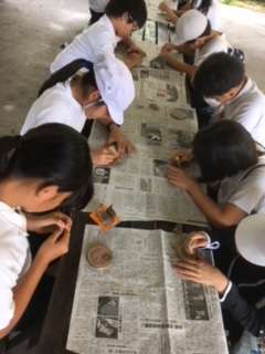 5年生林間学習 1日目 コースター作り