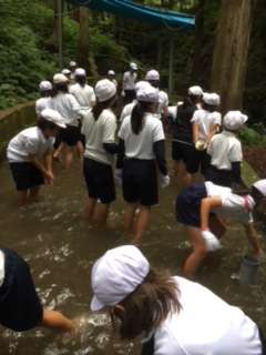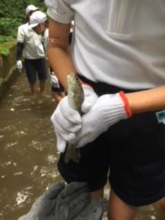 コースター作りの後にクラスごとに「魚つかみ」をしました。一人一匹、ニジマスをつかまえました。