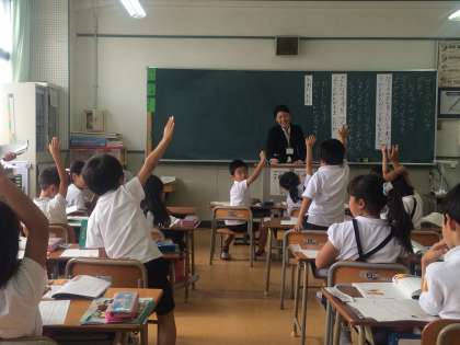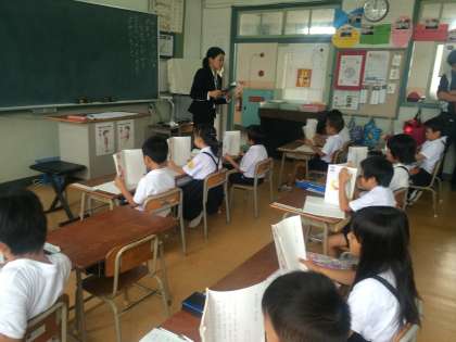 教育実習生のT先生が、1年1組で国語「サラダでげんき」の研究授業をしました。たくさん先生が後ろで見ていて緊張気味の子どもたちでしたが、だんだんいつもの調子で、どんどん手を挙げて発表していました。授業を見ることで、若い先生たちも一緒に学び合うことができます。