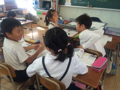 区内の先生たちが集まって、4年1組で社会科の授業研究を行いました。「消防の仕事が、3つの役割に分かれているわけを考えよう。」という学習課題で、消火・救助・救急について、一人一人が調べて考えをまとめ、ペアやグループで考えを発表した後、全体で交流しました。どの子も緊張しながらも一生懸命取り組みました。