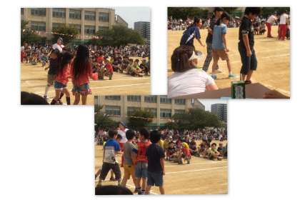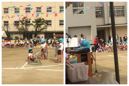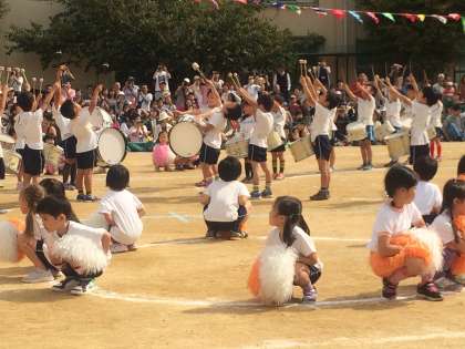 今日、新高幼稚園とみくにひじり幼稚園の運動会に行ってきました。どの子も一生懸命演技をしたり走ったりとかわいらしく、卒園した本校児童も参加する場面もありのほほえましい光景でした。