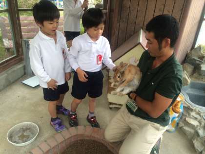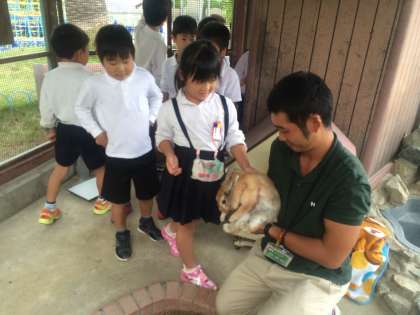 「かわいかった!!」「ふわふわしててあったかかったよ!」「目の色が、赤じゃなくて、茶色だったよ!」と少し興奮気味の1年生。明日、明後日は、2組と3組が体験します。