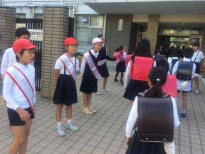 今朝も代表委員のメンバーが、校門で元気よくあいさつ。ちょっぴり恥ずかしげな1年生も、大きな声であいさつしています。「みんなが、あいさつをしてくれるとうれしいな。」「まだちょっと、声の小さい人がいて残念!」など、代表委員の感想でした。