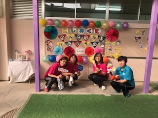 晴天に恵まれた運動会当日、給食調理員さんたちが給食室前をカラフルに掲示し、運動会を盛り上げてくれました。
