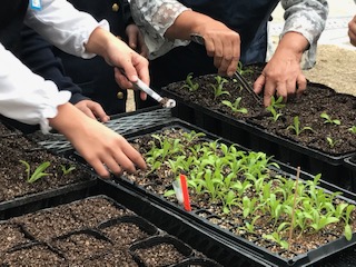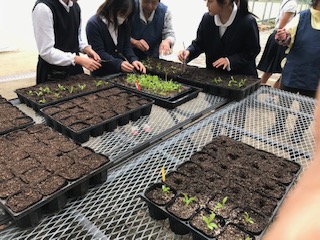 飼育栽培委員会の子どもたちも15分休憩を利用して、苗の植え替えを体験させてもらいました。