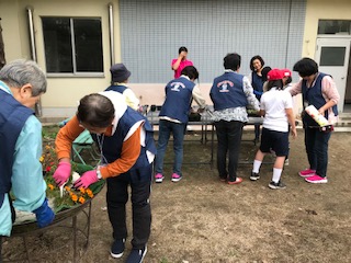 10月24日木曜日、地域のボランティア「夢ちゃん花づくり隊」の皆様のご協力により、キンセンカの苗の植え替えが行われました。