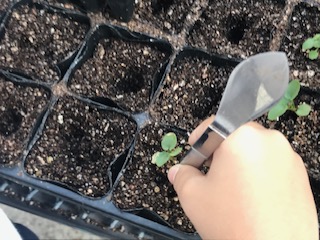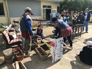 11月8日 地域のボランティア団体 夢ちゃん花苗ボランティアの方々のご協力により、前回種から植えたパンジーの苗を小さな鉢に植え替えました。2年生が植え替えを体験しました。小さな種が芽を出し、葉になっていました。ピンセットでやさしく抜き、一回り大きい鉢に植え替えました。2年生が全員体験させてもらいました。