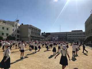 11月11日の1週間は「なわとび週間」でした。15分休憩の時間に、全校児童が運動場に集まり、みんなでなわとびをしました。音楽が鳴る中、一生懸命自分の課題にチャレンジしながら、15分間なわとびに専念しました。