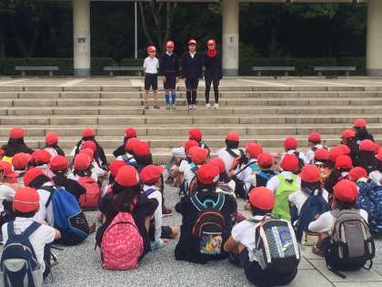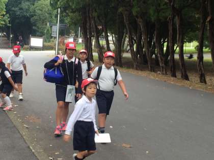服部緑地で縦割りグループに並び替え、スタート!
