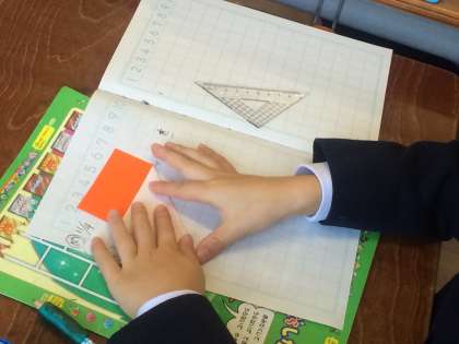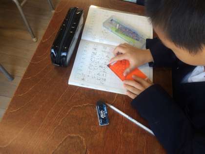 5時間目、2年1組で「長方形と正方形」の研究授業を行いました。長方形で学習したことをもとに、正方形について調べる学習です。角の大きさ(形)や辺の長さなどを一人一人が調べ、分かったことを発表しました。