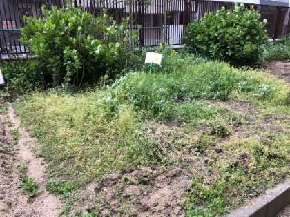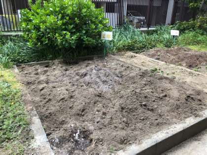 4月23日から、生かつのべんきょうでつかう学しゅうえんの土づくりをはじめました。みなさんが学校にとう校したらいっしょにミニトマトやサツマイモをうえましょうね。