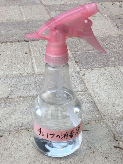 チョコラは、スプレーがちょっと苦手なんだけど、清潔は大切だから頑張ってるよ!!
