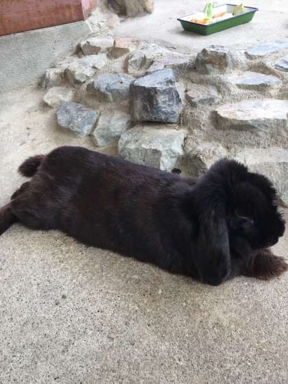 チョコラは、暑(あつ)いから、冷(つめ)たい床(ゆか)に体(からだ)をぺたーんってつけて涼(すず)んでるよ。