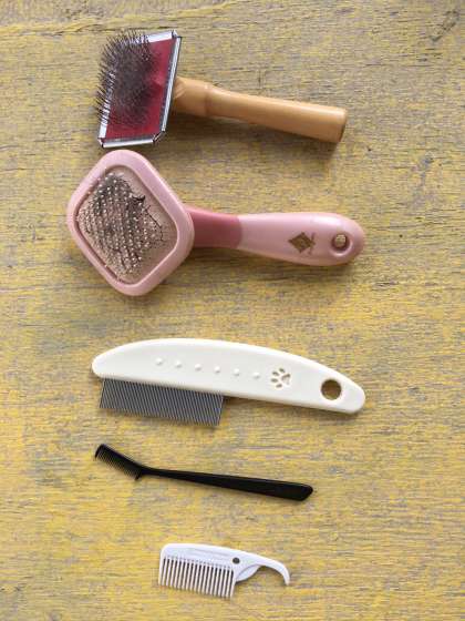 最近(さいきん)は、真っ黒(まっくろ)なくしでお顔(かお)の周(まわ)りの毛(け)をふわふわにといてもらうのがお気(き)に入(い)りだよ。