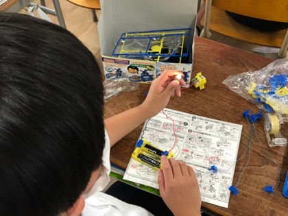 4年生の理科では、キットを使って電気のはたらきについて学習しています。