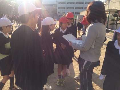 「児童会ニュース」を全校朝会の後、代表委員の人たちが各教室に配って回りました。