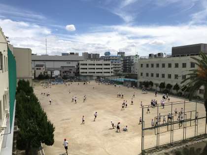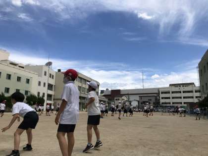 今日は久しぶりの青空です。午前中はまだぬかるんでいるところがあった運動場でしたが、昼休みには水もはけて使うことができました。
