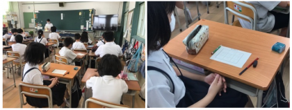 児童会の放送で、数字が読み上げられると、歓声をあげながらマスの数字に〇をつけていました。