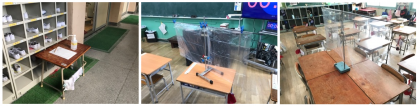 手指消毒用のアルコールや、臨時で作成したパーテーションによる対策をしながら進めさせていただきます。