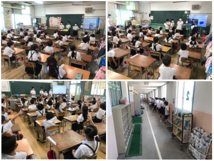 昨日、6年生が1年生の教室に行き、西三国小学校の学校紹介をしました。