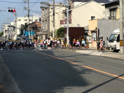 今日から2学期がスタートしました。登校する通学路では、地域の方々に見守られながら登校しました。
