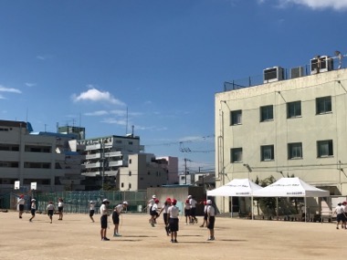 今日も、朝から気温が上がり残暑が厳しいですね。そんな中でも児童たちは体育の授業も頑張っています。