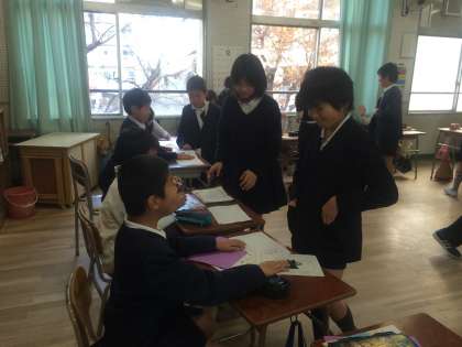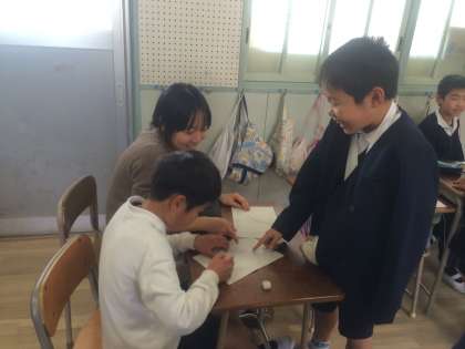 エイミー先生の英語学習は、クリスマスに欲しいものを紙に書いて、ツリーに飾る活動でした。紙に書かれた欲しいものはさまざまで、友だちを知る意味でも貴重な体験となりました。